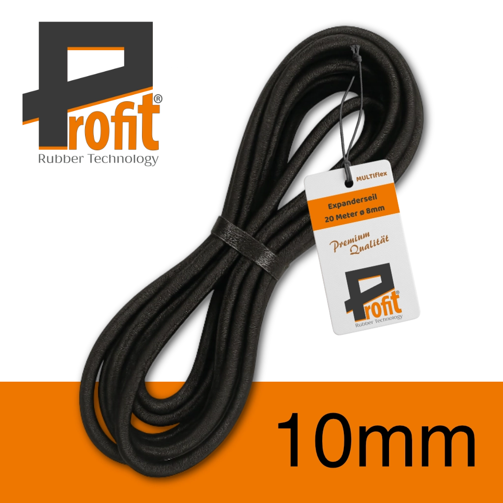 Expander rope 10mm from the tried-and-tested Multiflex series is the ideal solution when maximum elasticity, resilience and versatility are required. Whether as a tensioning rubber rope for tarpaulins, expander rope for camping, outdoor and industry or as a reliable rubber rope for trade, gardening, event construction and trade fairs – this rope by the meter impresses with its universal applicability and high professional quality. The colors black and white cover both practical and decorative applications.