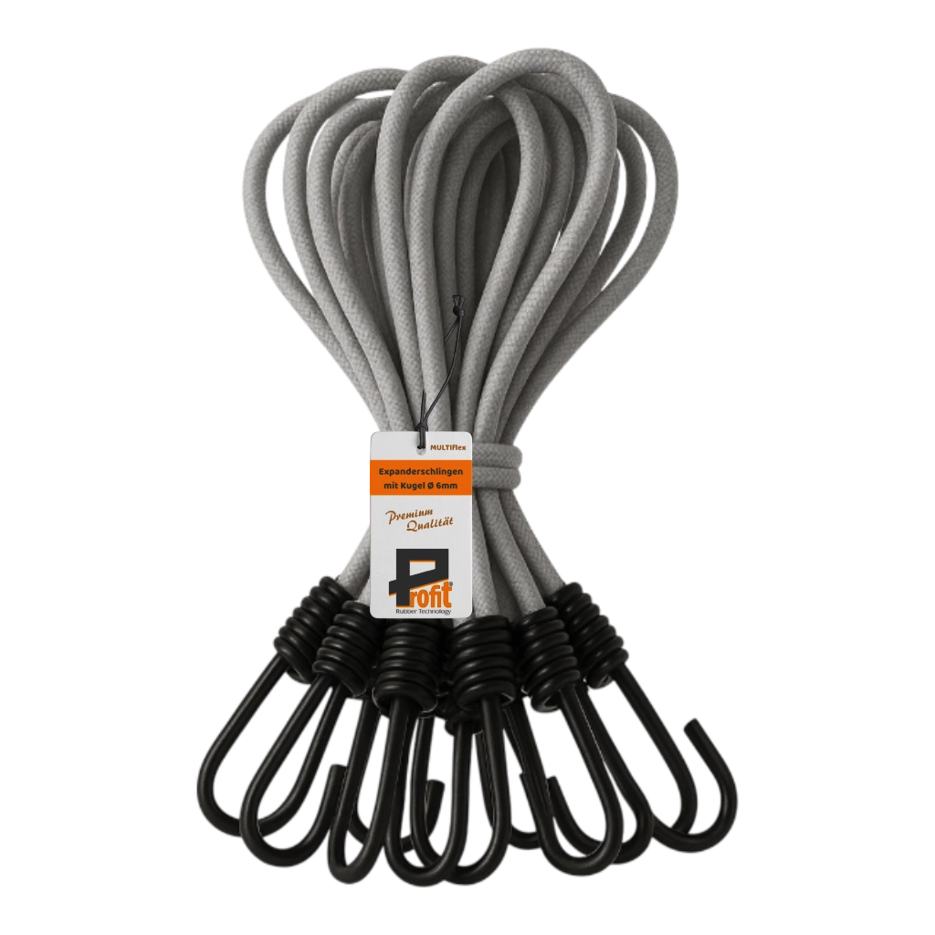 Expandergummi mit Spiralhaken - Expanderschlingen grau mit Spiralhaken für ExpanderseileExpander slings with spiral hooks 130mm – 250mm gray – 25 pieces