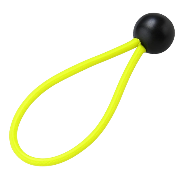 A strong elastomer core with a tightly braided sheath (PE/PP) ensures homogeneous elongation, high restoring force and abrasion resistance. The ball is precisely drilled, smoothly deburred and shaped so that the loop fits securely without chafing. Precise pressing at the base of the loop prevents chafing. The result: shorter assembly times, fewer complaints and smooth edges – whether attaching banners to the site fence, scaffolding tarpaulins or awnings.