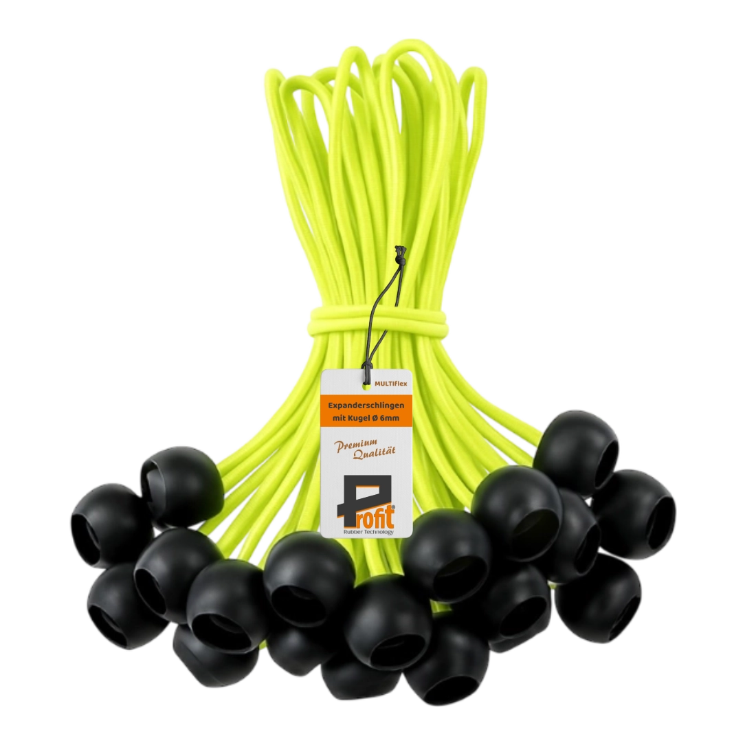 Yes, by the meter (expander rope/rubber rope) plus end pieces (balls/hooks/clamps) – the ball tensioner itself remains Ø 6 mm. - Which colors make sense for rubber tensioners?